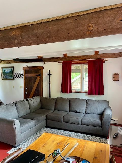 The Aviator has two log double bunk beds and hide-a-bed comfortably accommodating six adults. This cottage also has a covered patio porch with harbour views or walk out the bedroom back door and sit in the lawn chairs with a full waterfront and town view over the inlet.