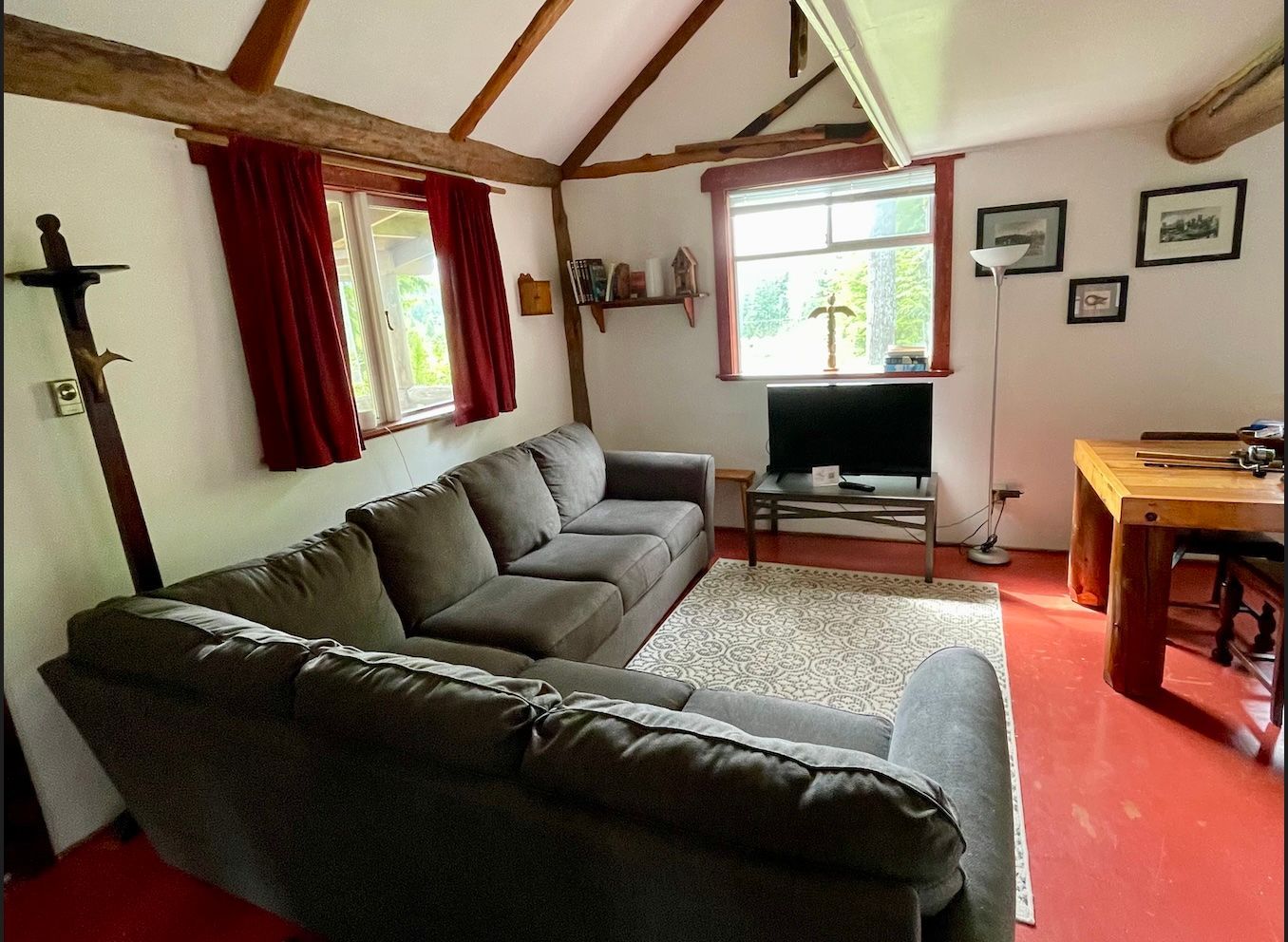 The Homesteader has a beautiful waterfront view from the dining area and the front bbq deck. In addition has its’ own washer and dryer. For families or groups that like a big view of the water and need laundry – this is the cottage for you!